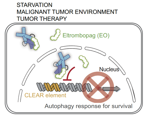 通过高灵敏度的筛选模型建立和高通量筛选,研究团队发现一种美国食品和药物管理局(FDA)批准的药物小分子艾曲波帕(Eltrombopag, EO)可以显著抑制TFEB。基于机制研究,团队发现了EO通过结合TFEB的basic helix-loop-helix-leucine zipper(bHLH-LZ)结构域,特别是HLH结构域的底部表面,影响TFEB识别DNA。团队通过进一步研究发现了小分子化合物EO,在体外和细胞环境中破坏TFEB-DNA相互作用,在基因组水平选择性抑制TFEB的转录活性,以剂量依赖的方式抑制自噬,并在动物模型中增加胶质母细胞瘤对化疗药物替莫唑胺的敏感性。综上,团队首次研发了具有明确作用机理,高效特异的TFEB小分子抑制剂EO,为多种肿瘤类型治疗提供了新的潜在协同治疗方案。该项工作在PNAS杂志在线发表https://www.pnas.org/doi/10.1073/pnas.2213670120
