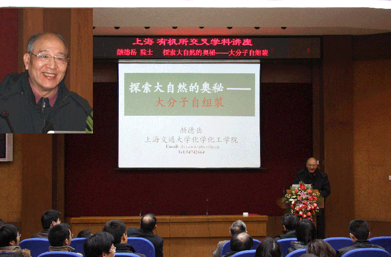 2009年2月25日下午,上海有机所交叉学科讲座第十二讲在有机所图书馆楼报告厅举行。此次讲座由所学术委员会主任林国强院士主持,特邀讲座人为上海交通大学的颜德岳院士,他做了题为“探索大自然的奥秘—大分子自组装”的讲座。部分研究员和一百多位职工、学生参加了讲座。