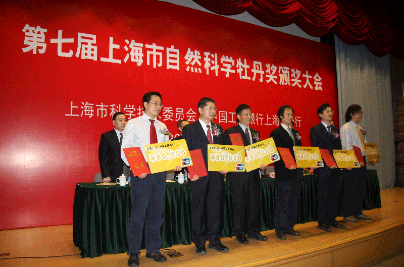 2009年5月12日下午,在上海城市规划展示馆举行第七届上海市自然科学牡丹奖的颁奖大会。上海市副市长沈晓明、市科技党委书记陈克宏、市科委主任寿子琪、中国工商银行上海市分行副行长成善栋等领导出席,为六位获奖者颁奖。我所马大为研究员获得本届牡丹奖,并代表获奖者发言。