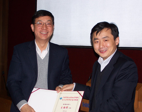 2009年12月17日下午,上海有机所交叉学科讲座第十六讲在有机所图书馆楼报告厅举行,特邀清华大学的王梅祥教授做了题为“杂原子桥连杯芳烃的超分子化学”的讲座。丁奎岭所长主持了讲座,部分研究员和一百多位职工、学生参加了讲座。