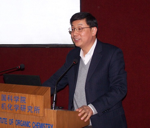 丁奎岭所长首先感谢王梅祥教授应邀来我所作讲座,并将上海有机所交叉学科讲座证书颁发给了王梅祥教授。王梅祥教授出生于上海,现为清华大学化学系和生命有机磷化学与化学生物学教育部重点实验室的教授,曾任中国科学院化学所所长和中国科学院分子科学中心主任。他的研究兴趣主要是基于新型大环主体分子的超分子化学,对映选择性生物催化和生物转化反应及应用,合成方法学及在天然产物和生物活性分子合成中的应用。王梅祥教授独立从事研究以来在国际重要的化学和有机化学学术刊物上发表论文100余篇,获得过中国化学会有机化学委员会“第三届中国化学会有机合成创造奖金奖”(2005)、香港求是科学基金会“求是杰出青年学者奖”(1998)、中国科技发展基金会和茅以升科技教育基金“茅以升北京青年科技奖”(1998)等。