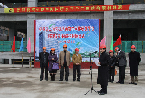 2月3日,上海有机所在建的“药物中间体研发平台(综合实验2号楼)”举行了结构封顶仪式。