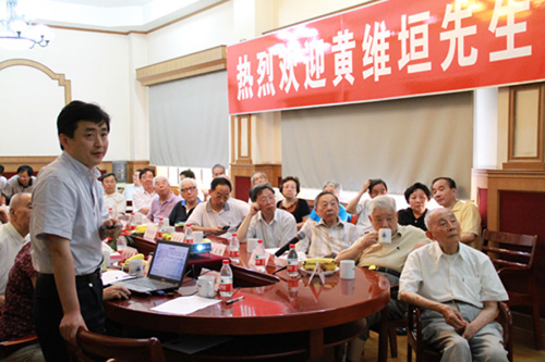 丁奎玲所长首先向黄维垣先生和老科学家、老领导们汇报了有机所三期创新阶段的总体情况,以及有机所这几年在面向学科前沿、拓展学科交叉、增强原始创新能力,发挥人才优势,面向国家需求,发扬优良传统,面向国家安全等方面作的新贡献,同时向大家报告了有机所“十二五规划”及启动与实施“创新2020”规划所作的一些思考。丁奎玲指出,今年是中科院知识创新工程三期结束和启动与实施“创新2020”关键的一年,对于有机所来说我们将面临着难得的机遇和艰巨的挑战。我们要进一步发挥广大科研人员和职工,包括已经退休的老领导、老专家的积极性,集思广益、规划未来,共谋发展。氟化学重点实验室主任胡金波研究员向黄维垣先生汇报了氟化学重点实验室近几年来的工作情况。吕龙研究员作为学生代表讲述了黄维垣先生如何为人师表、身体力行地教育和影响着他的学生和身边的人。