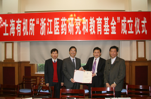 2010年11月9日,中科院上海有机所“浙江医药研究和教育奖励基金”成立仪式在有机所图书馆楼一楼长恭厅隆重举行。浙江医药股份有限公司陈丁宽副总经理,叶伟东总工程师,有机所丁奎岭所长、林国强院士,马大为副所长,唐勇副所长,各实验室负责人、科研处和研究生部负责人、部分学生代表出席了成立仪式。成立仪式由唐勇副所长主持。