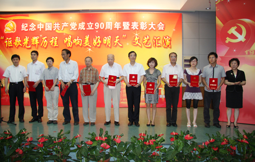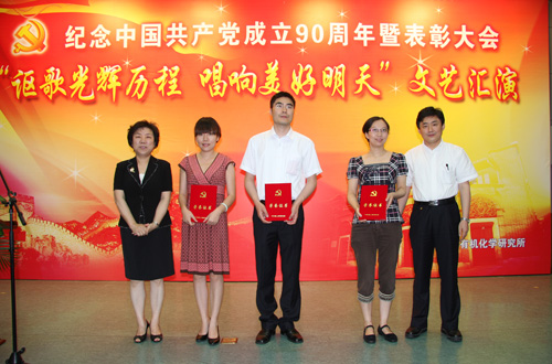6月28日,为纪念中国共产党成立90周年,推动全所创先争优活动的深入开展,激励党员在我所跨越发展的实践中奋发进取,建功立业,上海有机所举办了纪念建党90周年暨表彰大会。所领导班子成员、各党支部书记、民主党派代表、工青妇学群众团体负责人以及全所300多名党员代表参加了表彰大会。大会由丁奎岭所长主持。