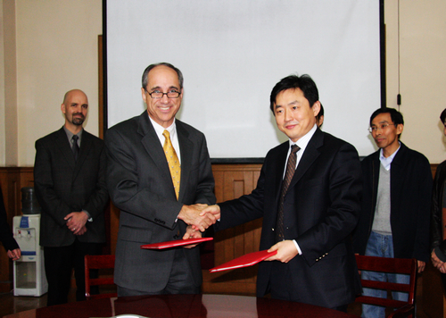 签字仪式上,丁奎岭所长欢迎代表团的来访并介绍了有机所的概况、CAS总裁Robert Massie对有机所的热情接待表示了感谢,双方互赠了礼品。参加接待的还有有机所CAS中国文献处理中心负责人、计算机化学室主任陈维明、图书馆馆长秦聿昌等。