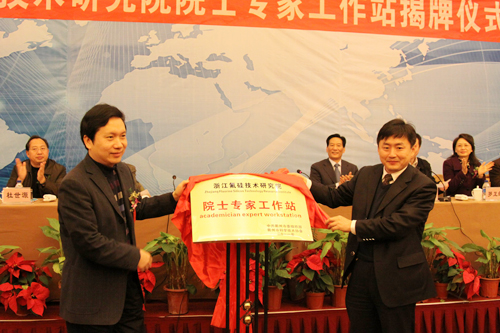 衢州市委副书记李剑飞代表市委、市政府对院士专家工作站的成立表示祝贺。他指出:近年来,衢州大力实施“科教兴市”和“人才强市”战略,制定落实了一系列优化创业创新环境的政策措施,实施了“引进海内外领军型创业人才”工程,吸引了数百位专家、人才来衢创业创新,与一大批大专院校、科研院所建立了紧密型合作关系。浙江氟硅技术研究院院士专家工作站的成立,是衢州市科技和人才工作结出的又一硕果。引进以陈庆云院士为代表的高端人才来衢工作,必将有力促进衢州市创新型科技人才队伍建设,完善产学研相结合的技术创新体系,加快推进氟硅产业科技创新和转型升级,助推衢州市经济社会又好又快发展。