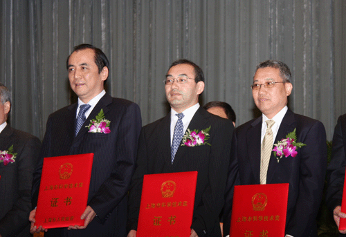 3月30日上午,上海市委、市政府在上海展览中心友谊会堂隆重召开了2011年度上海市科学技术奖励大会。副市长沈晓明宣读了市政府表彰决定。中共中央政治局委员、中共上海市委书记俞正声、市长韩正等领导为获奖代表颁奖。2011年度上海市科学技术奖授奖项目共326项(人),其中,科技功臣奖2人,自然科学奖23项,技术发明奖22项,科技进步奖277项,授予2位外籍专家国际科技合作奖。