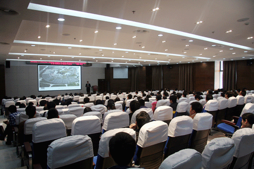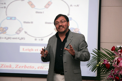 报告会由丁奎岭所长主持,300多位科研人员参加了报告,并被内容精彩、学术深厚的内容所感染,互动积极并交流热烈。Sidney Hecht教授首先为大家介绍了作为线粒体治疗药物的多功能自由基淬灭剂在设计方面的最新进展, William R. Roush 教授随后介绍了通过联烯的硼氢化反应制备的双官能的烯丙基硼试剂的发展及其在天然产物合成中的应用, Miguel Garcia-Garibay教授为大家讲解了人造分子机器的设计合成和测试。