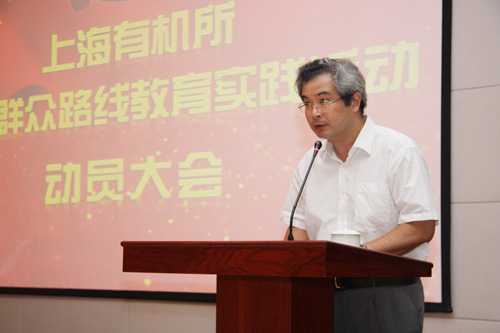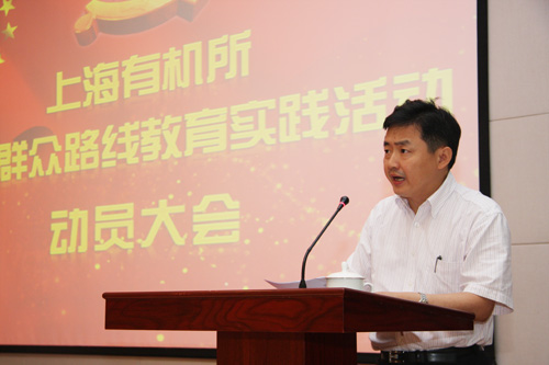 根据中央和院党组的统一部署,8月29日上午,中科院上海有机所召开党的群众路线教育实践活动动员大会,对深入开展教育实践活动进行动员和部署。上海分院群众路线教育活动第3督导组副组长、上海分院副院长张旭、成员朱熊、滕晓龙参加会议。 党委书记郏静芳作动员报告,所长丁奎岭主持大会。