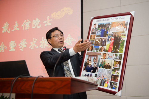 王国洪博士、游书力研究员分别作为两位院士的学生代表发言,表达了对恩师的感激与祝福。专程从美国前来的王国洪博士回忆到,袁先生在科研中对学生悉心指导,在生活上热心帮助,先生不仅是他的良师益友,更像是自己的家人。游书力研究员感慨地讲述了与戴先生深厚的师生情谊,戴先生在生活中对待学生如慈父,在科研方面又是一名严格的导师,先生严谨治学的科研作风、一丝不苟的工作态度,对待人生的乐观主义精神,都值得我们年青人学习。
