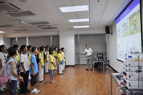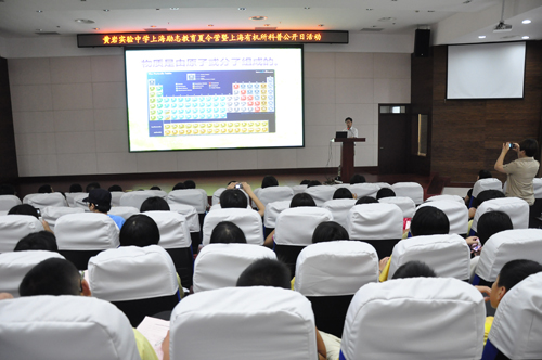 7月10日,黄岩实验中学上海励志教育夏令营暨上海有机所科普公开日活动在君谋楼举行。金属有机化学国家重点实验室游书力副主任、上海有机所分析测试中心康经武主任、科研管理处杨慧娜副处长,以及浙江台州黄岩实验中学师生近百人参加了本次活动。