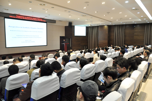 3月7日,中科院天然产物有机合成化学重点实验室举办了庆祝林国强院士七秩寿辰——“Perspectives in Synthetic Organic Chemistry” 学术研讨会。有机所陆熙炎院士、戴立信院士、陈庆云院士,所长丁奎岭、党委书记郏静芳、副所长马大为、唐勇、俞飚和沈兆雷,天然产物有机合成室的赵刚、田伟生、姜标、李超忠研究员以及有机所部分导师、来宾及林国强院士的学生等一同参加研讨会。