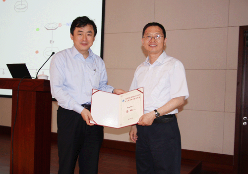 5月20日,应上海有机所交叉学科科学讲座的邀请,北京大学高松院士到上海有机所进行学术交流,并在君谋楼报告厅做了主题为“金属有机单离子磁体”的学术报告。丁奎岭所长主持了讲座,所内部分研究人员和学生百余人参加了讲座。