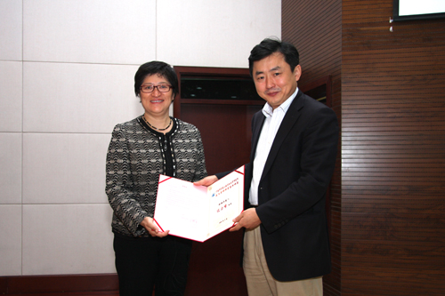 丁奎岭所长向迟力峰教授颁发有机所交叉学科讲座证书