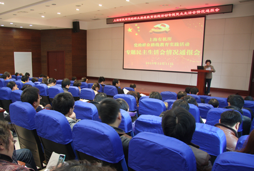 12月11日上午,上海有机所党的群众路线教育实践活动专题民主生活会情况通报会在君谋楼一楼报告厅召开,有机所所长丁奎岭主持会议,中科院上海分院党组书记、副院长、沪区党委书记王建宇到会指导并作重要讲话。第三督导组成员滕晓龙同志出席了会议。党委书记郏静芳通报了上海有机所专题民主生活会情况。