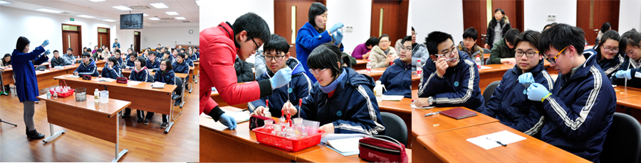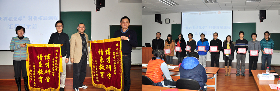 1月14日下午,“魅力有机化学”科普拓展课程汇报展示会在上海有机所君谋楼第一教室举行。徐汇区科协副主席宋开成、枫林路街道办事处副主任刘艺、徐汇区教育局中教科科长浦正权、零陵中学党总支书记、校长国庆波、上海有机究所党委书记郏静芳、副所长唐勇、俞飚等有关领导,上海有机所科研管理处、党政办公室负责人、科普志愿者及零陵中学的师生参加了此次汇报展示会。