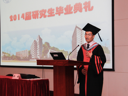 王晓明同学代表全体毕业生发表感人肺腑的毕业感言。他感慨地说,在有机所的日子,我们忍受了寂寞和孤独,我们坚持着挥洒下了最奋力拼搏的青春,我们也收获了创造和探索未知的那一份新奇和喜悦。在经历了这些坎坷荆棘之后,更加懂了导师的良苦用心,学会了坚毅、执着和凡事不轻易放弃的品质;同时对爱情和感恩有了全新的认识。