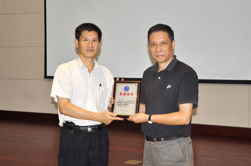 詹文龙在大会上向郏静芳和沈兆雷颁发荣誉证书,分别感谢他们在担任领导期间,为中国科技事业,为院、所改革和发展做出的杰出贡献和重要贡献。
