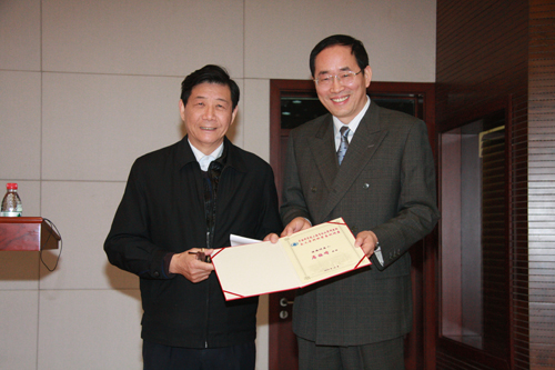 林国强院士向席振峰教授颁发“有机所交叉学科讲座”证书