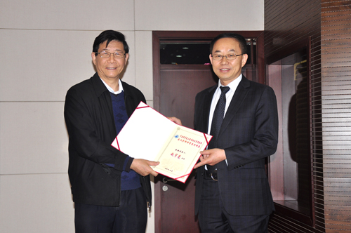 林国强院士向赵宇亮教授颁发“有机所交叉学科讲座”证书