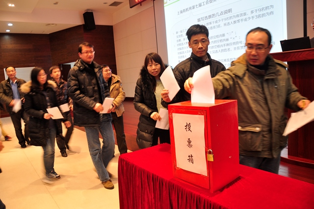 大会分预备会议、主席团会议和正式会议三个阶段进行。与会代表听取了工会副主席吕长贵同志所作的的第六届工会工作报告和经审委主任王建国同志所作的第六届工会经费审查委员会工作报告。根据会议议程,选举产生了上海有机所第七届工会委员9位:邓平、杜淑霞、余冰、杨军、胡金波、赵刚、秦聿昌、游书力、缪琳;第七届经审委委员3位:刘国生、杜淑霞、陆凯。余冰代表新当选的两委员对大家的信任表示衷心感谢,也特别表达了对上一届工会的谢意,认为上一届工会开创了有机所工会工作的新局面,为新一届工会工作得以顺利开展做了良好的铺垫。一届工会将继续本着服务职工的宗旨,做好联系研究所和群众的桥梁和纽带, 牢记责任和使命,凝聚职工,促进和谐。