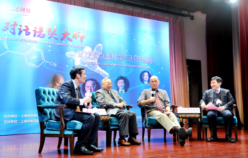 48号上午,由中科院上海有机所、上海市科协主办,上海市科协大讲坛管理办公室承办,中科院上海交叉学科中心、上海市化学化工学会协办的上海科协大讲坛”之“对话诺奖大师——玄妙的‘点击化学’与科技创新”在上海科学会堂隆重举行。本次报告主讲嘉宾为2001年诺贝尔化学奖得主、美国斯克里普斯研究所(The Scripps Research Institute)Karl Barry Sharpless教授,对话嘉宾为来自上海有机所的戴立信院士、丁奎岭院士和胡金波研究员。本次报告由胡金波主持。
