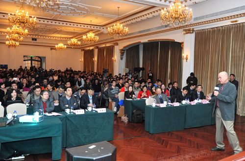 在报告中sharpless教授还通过图片和动画展示了近年来点击化学的研究进展。包括他的博士后——来自上海有机所的王志民博士利用金属锇催化的不对称环氧化反应,合成了公斤级的手性化合物;一个能量巨大的3+2的环加成“点击化学”反应分别在有水和无溶剂情况下的反应;“点击化学”在DNA中进行荧光标记的应用,而在此之前,科学家需要破坏DNA才能安装荧光标记等等。报告的最后,Sharpless教授表达了其目前对氟化学领域的浓厚兴趣与想法,以及未来在中国即将开展相关合作研究。