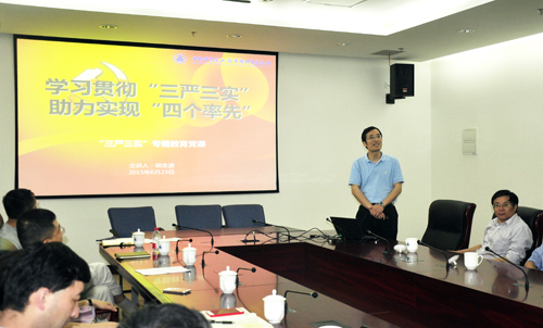在专题党课上,胡金波以“学习贯彻‘三严三实',助力实现‘四个率先’”为题,深入浅出地讲述了“三严三实”的背景及时代寓意,以践行“三严三实”的现实意义为引,激发领导干部“严以修身、严以用权、严以律己;谋事要实、创业要实、做人要实”的思想自觉,并指出落实“三严三实”的实践路径是将“三严三实”与“率先行动”计划和“科创中心”建设相结合、与从严治党和“两个责任”落实相结合。他还联系研究所实际,列举案例,剖析现存的“不严不实”问题,传递了有机所老一辈科学家的榜样力量。