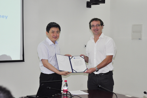7月9日上午,“中国科学院外国专家特聘研究员”证书授予仪式暨学术报告会在上海有机所君谋楼第一会议室举行。丁奎岭所长主持了此次授予仪式,并为法国图卢兹第三大学(Université Paul Sabatier)的教授Laurent Maron颁发了荣誉证书。