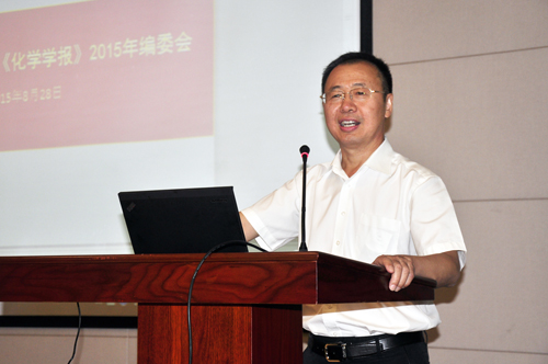 《化学学报》2015年编委会于28日下午举行,《化学学报》主编周其林,副主编:丁奎岭、张希、高松、刘忠范、江桂斌、何川、帅志刚,以及冯小明、黄飞鹤、黄培强等50多位编委老师出席了会议。会议首先由周其林主编致辞,对各位编委及与会全体人员在百忙之中参加本次会议表示感谢,同时也感谢大家一直以来对《化学学报》的支持和贡献。《化学学报》主管杨侠博士向各位主编、副主编和编委老师们介绍了《化学学报》,汇报了从2012年下半年改版以来的工作进展情况,以及取得的成绩和存在的问题。接下来各位老师相继发言,对期刊的发展建言献策并进行了热烈的讨论。