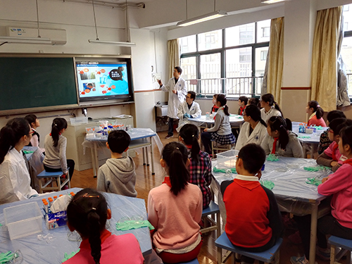 4月14日,由上海市青少年活动中心和上海少年科学院及沪上各大科研院所、专题性科普场馆联合举办的2016“东方少年科学讲坛”之“科普讲座公益校园行”活动年内首次启动,上海有机所的科普志愿者应邀来到静安实验小学,给小朋友们带来了“水中魔术”主题科普拓展课程。此次课程由来自金属国家重点实验室、上海有机质谱中心的赵君博等志愿者担任授课任务。