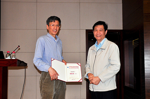 4月20日,中国科学院上海硅酸盐研究所施剑林研究员应邀到上海有机所进行学术访问,并在君谋楼报告厅做了主题为“介孔氧化硅纳米颗粒的可控合成与药物输运”的交叉学科讲座。上海有机所林国强院士主持了讲座,并为施剑林颁发“上海有机所交叉学科讲座”证书。所内一百余名科研人员和学生参加了此次学术活动。