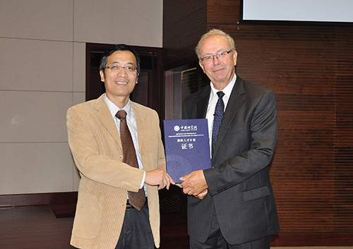 10月17日下午,上海有机所举行了“2016年中国科学院国际访问学者”证书授予仪式暨学术报告会。党委副书记(主持工作)胡金波和副所长俞飚分别为德国明斯特大学(University of Münster)的Werner Günter Haufe教授和意大利那不勒斯费德里克二世大学(University of Naples Federico II)的Antonio Molinaro教授颁发了荣誉证书。