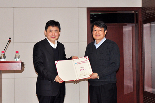 2月23日上午,中科院物理研究所高鸿钧院士应邀来到上海有机所进行学术访问,并作了题为《“单分子机器”的构造、组装与物性》的交叉学科科学讲座。上海有机所所长丁奎岭院士主持了本次讲座,并为高鸿钧颁发了“上海有机所交叉学科科学讲座”证书,全所两百余名科研人员和学生参加了此次学术活动。