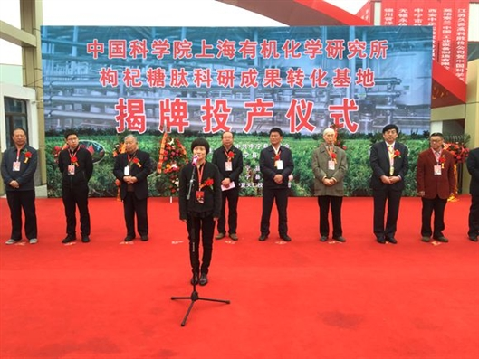 中宁县县长陈宏在致辞中表示,中科院上海有机化学研究所枸杞糖肽科研成果转化基地揭牌投产仪式,这是中宁县深化院地院企合作取得的又一突破,必将对中宁枸杞产业向供应链、产业链和价值链高端发展产生积极的推动作用。