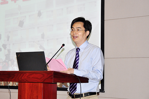 胡金波殷切的希望每一位毕业生:不忘初心,坚守理想。人生是一个不短不长的奋斗旅程,既有很多诱惑,也有许多不尽人意之处。但我们不能忘记自己“科技报国、服务人民”的初心和理想。科研生涯像是一场考验每个人耐力的马拉松,谁能够时刻不忘初心,牢牢守住了自己的理想,在别人放弃的时候依然坚持,谁就是最后取得成功,实现自己梦想的那个人。脚踏实地,勇于挑战。希望同学们在今后的人生道路中,既能仰望星空,又能低头踏好人生的每一个脚步,怀着一颗淡定的心,相信天道酬勤,相信厚积薄发。成功需要机遇,机遇源自挑战,往往越具有挑战性的事业就越是有意义,越是能够让人们的生活变的更美好。希望每一位同学都能够带着有机所人的精神、有机所人的思想、有机所人的期盼在各自的岗位上做出卓越的成绩。追求卓越,开拓创新。汪猷院士《无涯之知,世代之功》的文章,时刻告诫着我们,做科研的人,不要满足于已得之功,科研的道路上探求知识永无止境。希望大家一定要有超越老师和前辈的勇气;一定要牢记一个科技工作者的使命,把自己的事业与国家和人民的需求有机地结合起来,为民族复兴的伟大蓝图增添属于你们的浓墨重彩的一笔。学会合作,常怀感恩。我们生活在庞大的社会大家庭中,需要学会与别人团结合作,乐于分享。只有善于合作的人,才有可能干出一番大事业!要怀着一颗善良和感恩的心,善待生命、善待社会、善待大自然;善待身边的普通人,善待周围每一个人的尊严;当然,最后大家也别忘了善待自己。
