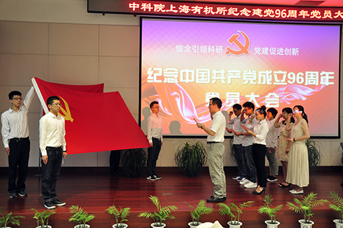 7月7日上午,上海有机所召开纪念建党96周年党员大会,隆重纪念中国共产党建党96周年华诞,深入推进“两学一做”学习教育常态化制度化。所领导班子成员、两委委员、全所党员、工青妇负责人、民主党派负责人及部分党外课题组长参加大会,会议由党委副书记(主持工作)胡金波主持。