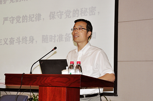 上海有机所林国强院士上了题为“重温入党誓言,勿忘入党初心”的专题党课。他以共产党员的入党誓词为引,结合有机所的发展历程,从多角度、多方位讲述了有机所老一辈科学家,在新中国发展的时代大背景下,如何身体力行地践行严以律己、克己奉公、怀揣理想、无私奉献的感人故事,同时阐述了自己作为一名普通党员对“入党初心”,以及对以习近平同志为核心的党中央治国理政思想的深入理解。林国强声情并茂的讲述,获得了全场热烈的掌声。林国强的报告不仅是一堂生动的党课,更是一次珍贵的所史教育,大家无不感受到有机所老一辈优秀党员的人格魅力,他们崇高的思想境界和优秀品质是有机所宝贵的财富,希望广大党员能够向老一辈科学家们积极看齐,他们是我们终生学习的榜样。
