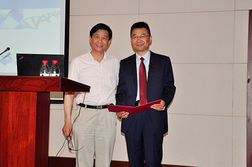 报告前林国强向大家介绍了马汝建的履历,并将上海有机所交叉学科讲座证书颁发给马汝建。