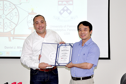 9月5日下午,“2017年中国科学院国际访问学者”学术报告在上海有机所第一会议室举行。陈耀峰研究员主持了此次学术报告,并为宾夕法尼亚大学 ( University of Pennsylvania)的Daniel J. Mindiola教授颁发了荣誉证书。
