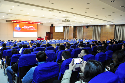 12月15日上午,上海有机所举行党的十九大精神学习报告会,深入学习贯彻党的十九大精神,不断推进“两学一做”学习教育常态化制度化。研究所领导班子成员、两委委员、各支部党员、部分民主党派成员参加报告会。会议由党委书记胡金波主持。