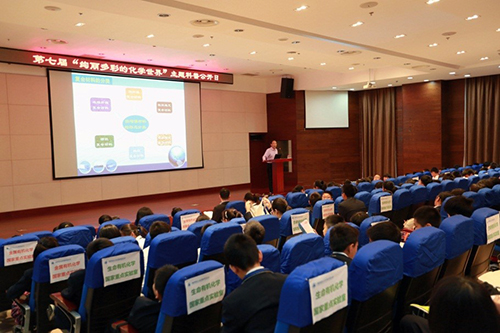 开幕式之后,上海有机所房强研究员作了题为《碳纤维复合材料及其应用》的科普报告。房强用生动、易懂的语言,向同学们介绍了碳纤维复合材料的性能、特点及应用。碳纤维复合材料具有质量轻强度高和耐腐蚀的特点,已被广泛应用于航空航天和船舶制造行业,同时,也广泛应用于人们的日常生活中,如山地自行车三脚架、网球拍、钓鱼竿、风力发电机叶片、医院的CT床、高铁座椅、大型客机的机舱支持件、残疾人假肢、游艇和电动汽车部件等等。房强研究员告诉同学们,随着人们生活质量的进一步提高,碳纤维复合材料将会进入人们生活的各个方面。最后,房强还展示了他课题组制作的电动车用碳纤维复合材料部件和全碳纤维游艇,引起同学们阵阵欢呼和热烈的掌声。