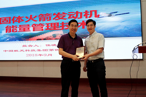 9月28日,中国航天科技集团航天动力技术研究院的侯晓院士应邀到上海有机所作交叉学科讲座,在君谋楼报告厅作了主题为“固体发动机能量管理技术”的精彩报告。上海有机所副所长俞飚研究员主持了本次讲座,并为侯晓颁发了“上海有机所交叉学科科学讲座”奖牌,全所一百余名科研人员和学生参加了此次学术活动。