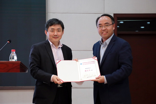 丁奎岭院士向胡文平教授颁发有机所交叉学科讲座证书