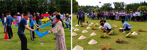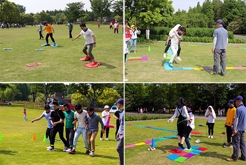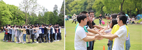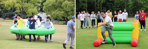 下午的联合对抗赛在樱花大草坪上热烈进行,同学们在活泼有趣的热身活动之后分为八只队伍,炎热的天气丝毫没有影响大家的热情,两家单位的同学们在活动中都大展身手,尽情挥洒智慧与汗水,在场上留下了一幕幕动人风采。
