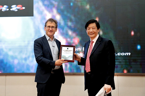 首先,林国强简要介绍了Bernard L. Feringa的成长经历和学术成就,并为Bernard L. Feringa颁发了汪猷科学讲座纪念证书。