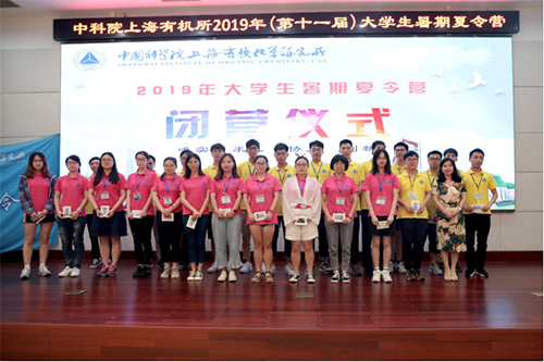 7月10日下午,夏令营闭营仪式在君谋楼一楼报告厅举行。来自武汉大学的张芸浩,大连理工大学的李朔,北京化工大学的凌欢作为营员代表发言,分享自己在夏令营活动中的见闻与感受。研究生部主任王娟对本次夏令营活动进行总结并向活动中表现优秀的同学颁发纪念奖品,并代表上海有机所再次感谢并祝福所有参营同学。