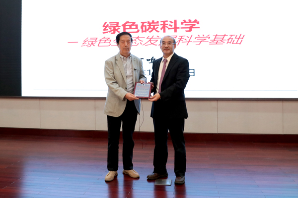 10月10日下午,中国科学院院士、石油化工科学研究院原总工程师、华东师范大学何鸣元教授应邀访问上海有机所,在君谋楼报告厅作了题为“绿色碳科学―绿色生态发展创新的科学基础”的汪猷科学讲座。唐勇院士主持了本次讲座,并为何院士颁发了汪猷科学讲座纪念铜牌。