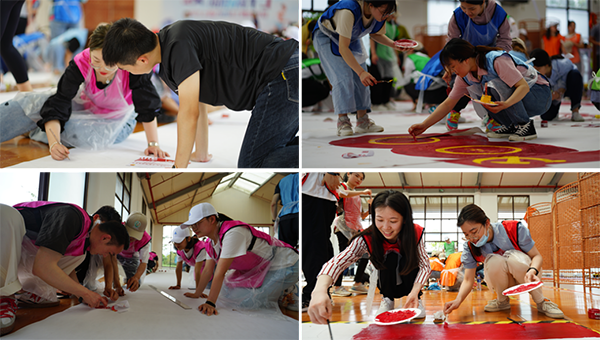最后的“共绘百年蓝图”项目,全体青年共同完成一副献礼100周年绘画作品,展百年光辉历程,绘理想之光蓝图。青年们需要自己测量尺寸,既要考虑自己画作的部分,又要兼顾旁边团队的衔接,时间短,任务重。大家手拿尺子,绘笔,清晰地勾画出轮廓,认真涂上色彩,鲜红的旗帜、气势雄伟的天安门,高高耸立东方明珠,每一笔每一画,展现了祖国日新月异的变化和繁荣昌盛的景象,凝结了青年们对祖国深沉的热爱与赞美。传承红色精神,坚定理想信念。